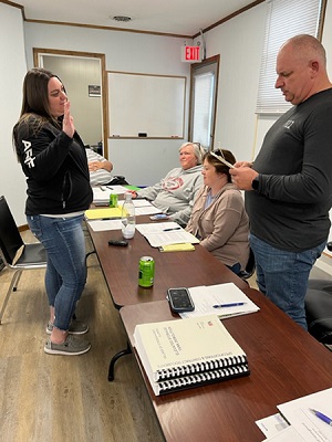 Following the reading of the letter, Mayor Schaley swore in Brittany Smith as the new village clerk/treasurer.