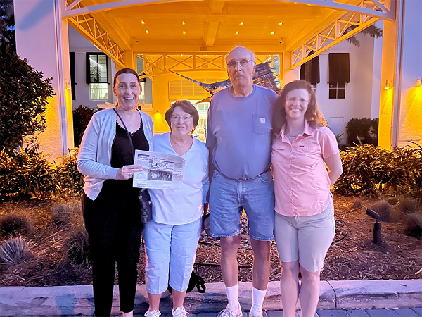 Becca Ross Moss (N Platte, NE), daughter of Virginia and the late Bill Ross, took the Quill along to visit her first University of Illinois roommate, Angie Brix (Champaign, IL) and her parents, Dale and Marilyn Brix (Assumption, IL). They explored Hutchinson Island, Florida recently and highly recommend staying at Nettles Island.