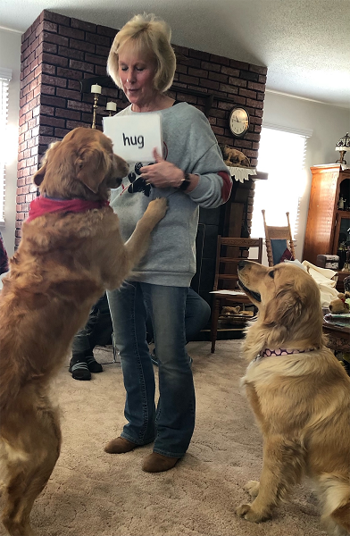 One of Laurie’s volunteer activities is “Paws for Reading” when she takes the dogs into the classroom and has three students per dog.