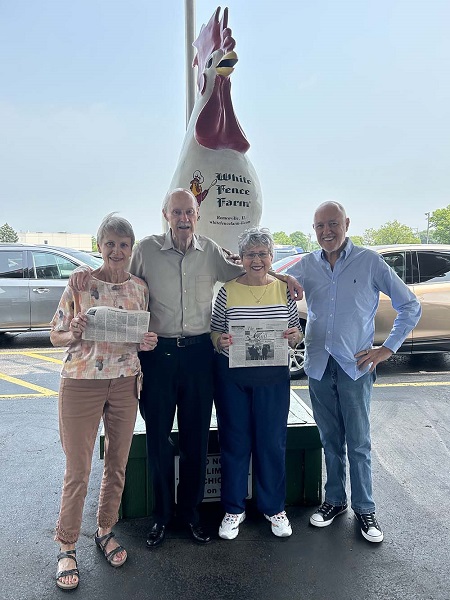 The Peterson sibs, John (Montgomery, TX), Merrill (Creve Coeur, MO), and Rose (Monmouth, IL) gathered at Maida and Joe McCormack’s home in Joliet, IL on July 13th for a five-day reunion which included celebrating Maida’s birthday and her grandson’s 8th grade graduation. The sibs took along the QUILL to White Fence Farm in Romeoville plus a page from the 1926 GRAPHIC that noted their mother (Neola Taylor Peterson) excelled in 4th grade and was exempt from exams..
