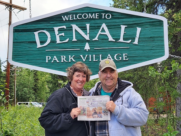 Lori (L) and Curtis Schrock (R) of Kirkwood, Illinois took The Quill along to Denali National Park Alaska, one of their stops in their recent Alaska excursion.