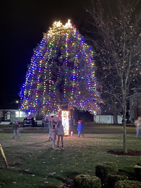 The Tree Lighting Ceremony at the Stronghurst park Friday evening found the weather "a bit frightful," but Booster Club members reported that the music, cocoa, cookies and lights increased the Christmas spirit!