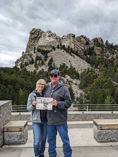 John and Sharon Dew of Kirkwood visited Mt. Rushmore the end of September and “The Quill” went along! "God Bless America!" When you take a trip, be sure to take “The Quill” along and have your picture taken with it and send it to us. Let's see where all “The Quill” can travel.
