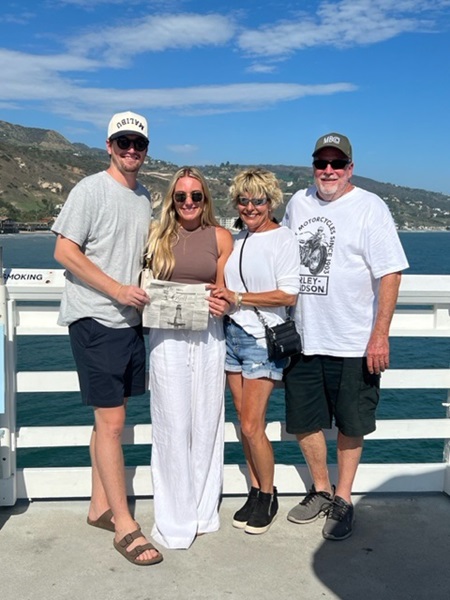 Kris and Diana Beals took The Quill along on a motorcycle trip to the west coast. First stop was Dallas, TX, where they visited son Ryan and his family. Next up was a stop in Calabasas, CA, where they visited son, Alex and fiance Paige (pictured above at the Malibu Pier). After a stop in Moab, Utah for some 4-wheeling, they headed back to West Des Moines, IA to visit daughter Laura and family. The 4700 mile trip included riding in 108 degree temperatures across the Mohave desert and 40 degrees and rain crossing back over the rocky mountains, and many memorable stops along the way.