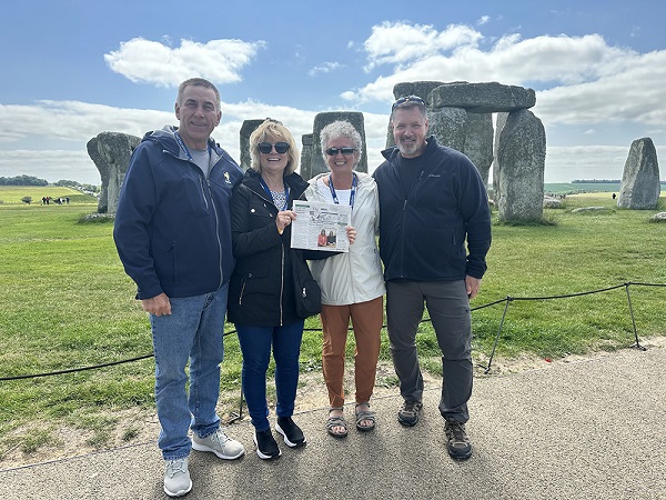 Wayne and Susan Bray of LaHarpe and Denise (Vaughn) and Chris Hanley of Peoria took the Quill along on their recent trip to England and Scotland. The two couples were part of an 18-day YMT Tour of the United Kingdom. They are pictured at Stonehenge which is described as a prehistoric temple estimated to be 4500 years old. The second picture of Wayne and Susan is in the Scottish Highlands at Inveraray Castle, a “newer” castle built in 1773 which is currently occupied by the Duke and Duchess of Argyll. Scotland is home to over 800 castles.