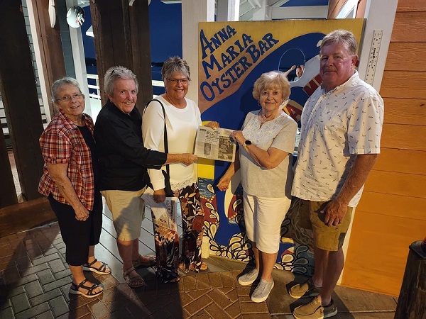 The Quill traveled to Sarasota, Florida to the Oyster Bar where dinner and a good time was enjoyed with (from left) Alice Defenbaugh of Biggsville, Ruth Smith of Kirkwood, Susan Jensen of Roseville, Margaret Jensen of Kirkwood, and Russ Jensen of Roseville. Also (not pictured) Ralph and Kathy (Defenbaugh) Gehrig of Wheaton. When you go on a trip take "The Quill" along and have your picture taken with it and send it to us. Let's see where all "The Quill" can travel.