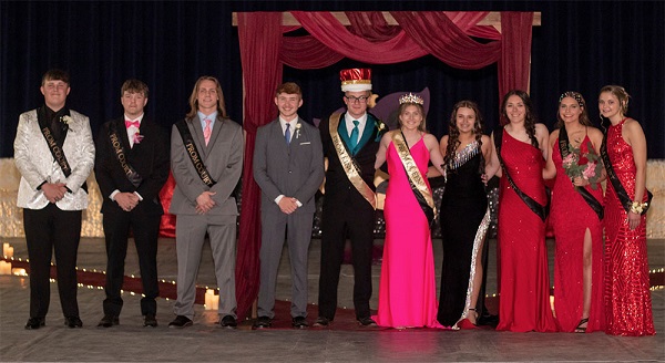 West Central King and Queen Dayne Gittings and Brooklyn Miller were crowned at their Jr-Sr Prom and pictured standing with this year's Prom Court. From left to right are Juniors Blake Cole, Hunter Shrader, and Isiah Stephson, last year's Senior King Conner Gibb, (King Dayne Gittings, Queen Brooklyn Miller) last year's Queen Senior Keigan Thacker and Junior candidates Shelby Bowman, Liberty Miller, and Lexi Kane. (by Country Heart Photography/Amanda Wood)
