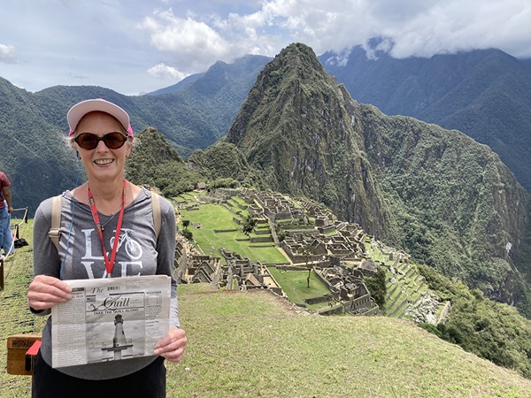 Julie Kralovec of Boise, Idaho, grew up in LaHarpe, a 1972 LHS graduate, and says she loves keeping in touch with "home" through friends and with "The Quill". She traveled in October to Peru and took "The Quill" along. Among lots of things, she visited the floating islands in Lake Titicaca, and many Inca ruins with Machu Picchu being the highlight, and "The Quill" went along. It was a fun and memorable trip, she said. When you go on a trip, take "The Quill" along and have your picture taken with it and send it to us. Let’s see where all "The Quill" can travel.