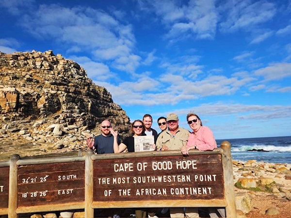 Zack and Diane Stamp, now living in Florida, along with their family, took "The Quill" along to Cape Good Hope South Africa, the most south-western point of the African continent. Their daughter-in law "Val" (formerly Valerie Corey of Stronghurst), is holding "The Quill". When you go on a trip take the Quill along and have your picture taken with it and send it to ous. Let's see where all the Quill can travel.