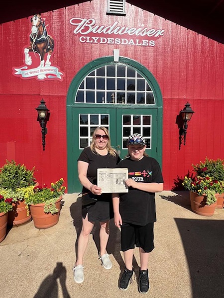 Treasa Pence and her grandson Lucas Pence of Stronghurst, took "The Quill" along on their trip to St. Louis to Grant’s Farm recently to see the world famous Budweiser Clydesdale horses. When you go on a trip, take The Quill along and have your picture taken with it and send it to us. Let's see where all The Quill can travel!