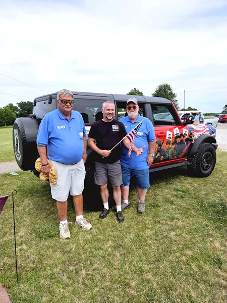 From left is Raritan Firemen Golf Tournament Co-chair Earl Waller, WWFS Rep. Dustin Pearson and Raritan Fire Dept. co-chair Harry Underwood standing in front of the Memorial Ford Bronco that WWFS brought to the tournament to display. (See more on page 10.)