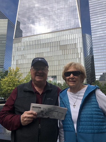 Larry and Pat Louden of Hot Springs, Arkansas took The Quill along when they toured the World Trade Center 9/11 Memorial in New York City.