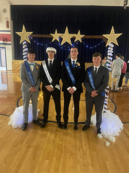 Court members from left are: Kyle Lafary, King Antonio Martinez, Peyton Woodbury, and Kaleb Thompson