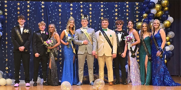 Illini West Prom “A Night Under the Stars” was held May 4th at the Smoking Gun Club in Hamilton Il. The prom court from left to right: Reece Shoup, Colby Robertson, Kaelyn Ferrill, Allison Hunter, Ian Bentzinger, Nickolas Huls, Thomas Chandler, Josie Bryan, Laney Brown, Payton Downs. King and queen: Ian Benzinger and Allison Hunter.