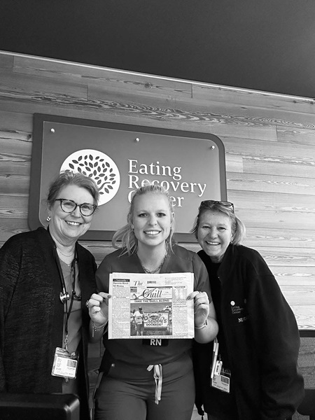 Ali Postle took The Quill along to her last day of work at "Eating Recovery Center" in Plano Texas. Her coworkers said they love "The Quill" and wanted to be a part of it on her last day. Pictured with Ali holding the Quill are Nancy Bloom and Sally Moore both of Plano. Ali has enjoyed working with her friends at the center and visiting often her Uncle Troy and Aunt Erica Andrews and seeing all the sights and sounds that go on in Dallas, Texas. When you travel, take "The Quill" along and have your picture taken with it, and then send it to us. Let's see where all "The Quill" can travel.