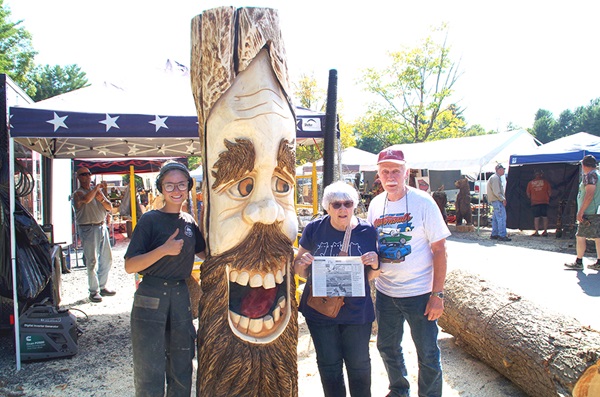 Chris and Terry Argenbright of Blandinsville took "The Quill" along when they traveled to Cook Forest Chainsaw Carving Roundup in Cooksburg Pennsylvania in mid-September. Pictured with Chris and Terry is Chainsaw Jenna (she has a YouTube channel) with her chainsaw carving of a wood spirit. It was auctioned off for charity and sold for $1,200.00.