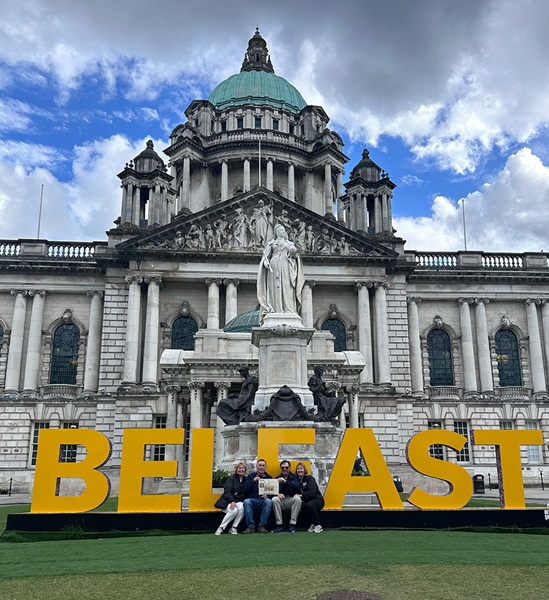 The picture is at the Belfast City Hall in Northern Ireland. When you travel, take "The Quill" along and have your picture taken with it, and then send it to us. Let's see where all "The Quill" can travel.