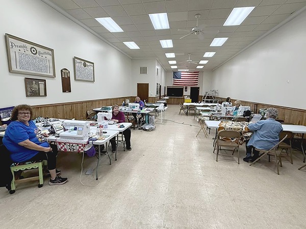 At th left bottom of the opposite page, Peggy Shutwell of Biggsville displays one of the Quilts of Valor which is being made for the occassion. She was busy working on a quilt for a wedding gift which is in various shades of blues and white hoping to be finished by the couple’s June wedding.