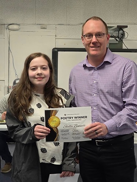 La Harpe 6th grade student Stella Bennett won First Place at the 36th Annual Carl Sandburg Poetry Contest. She is the daughter of Michael Bennett and Danielle McIntyre.