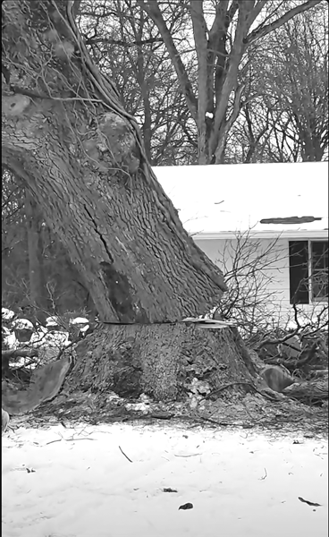 Our family's historic large oak tree in Stronghurst, older than this nation at least, was taken down Tuesday, December 9, 2025 and it is conjuring up lots of memories for each of us in the Andrews-Rodeffer family.