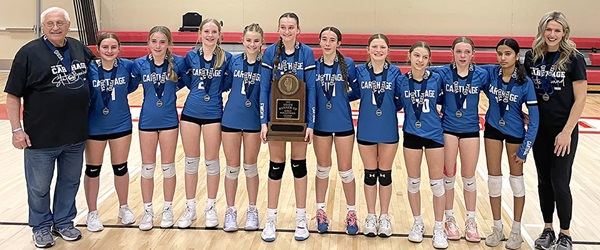 The Carthage Middle School 7th grade girls volleyball team claimed 2nd place at the IESA 7-2A state tournament in Brimfield last weekend.