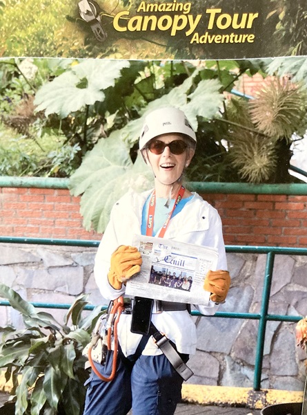 Julie Kralovec of Boise, Idaho, formerly of La Harpe took “The Quill” along to Costa Rica in March. They enjoyed the beautiful flowers and the local wildlife like monkeys and sloths. Julie was able to do a zip line over and through the forest and really enjoyed her trip.