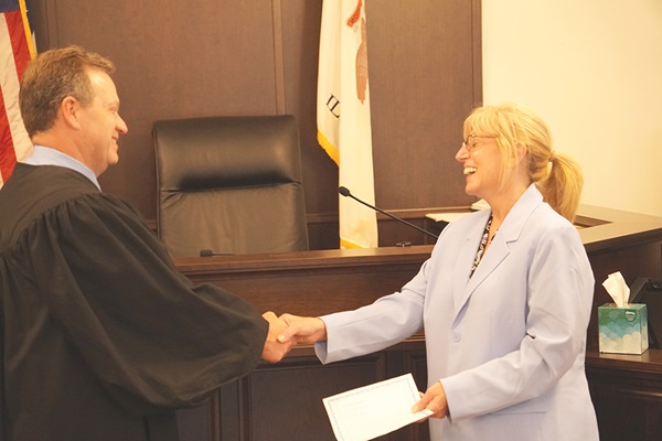 Kristen Petrie was sworn in Friday afternoon by Judge Ray Cavanaugh as Henderson County State’s Attorney.