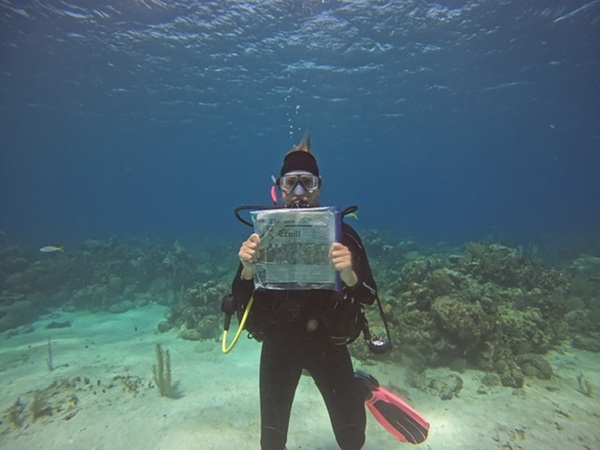 Sandy Bell of Burlington, IA took "The Quill" along to Roatan Honduras. She enjoyed five days of deep sea diving, one night dive with the West Bay Divers, and her stay at a boutique hotel La Pacita Inn.