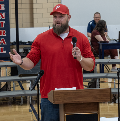 Sgt. Kevin Mershon, US Marine Corp, speaking at the La Harpe Veterans Day Program.