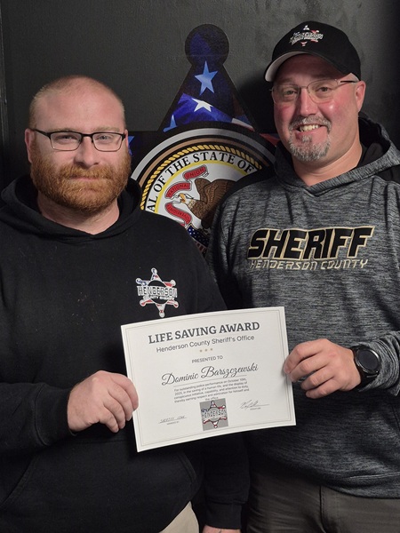 Deputy Dominic Barszczewski was honored with the Henderson County Sheriff’s Office Life Saving Award for his commendable actions on October 10th, 2025.