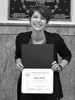 Keara Weber, Hancock County Circuit Clerk, has earned the Certified Court Manager (CCM) credential from the Institute for Court Management through the National Center for State Courts (NCSC), a nationally recognized distinction for court professionals demonstrating excellence in court administration and leadership.