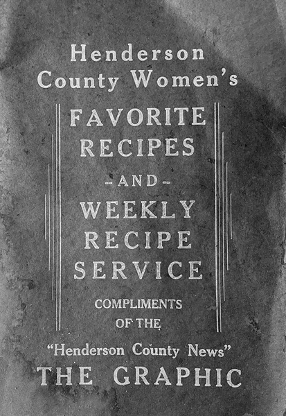 Within this publication, Henderson County women were encouraged to submit recipes to The Graphic for publication in a weekly column. Recipes were then to be clipped from the newspaper and added to dedicated blank pages in the cookbook.